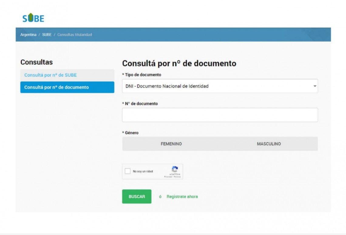 Lo único que se debe hacer es ingresar el número de documento del usuario, y así sabrá cuál es la SUBE asociada al nombre. O a la inversa, ingresar el número de la SUBE, y aparecerán los últimos dígitos del DNI asociado a la tarjeta.