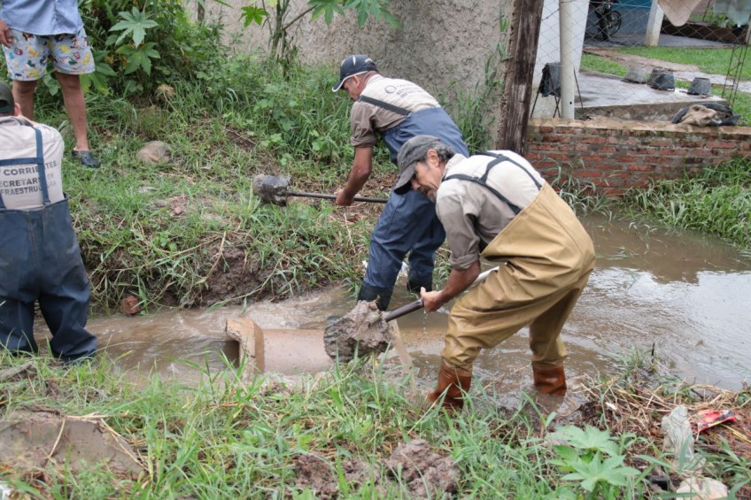 Una tarea que se reforzó aún más en los barrios más afectados. Al respecto, Ruiz mencionó: "Estamos trabajando en La Olla, en el Cichero y el Paloma de la Paz, sobre todo la limpieza y desobstrucción que puedan tener los sumideros por los plásticos y la basura que hay en la calle. En Las Heras y Chile también estuvimos trabajando, al igual que en Tacuarí y Cazadores".