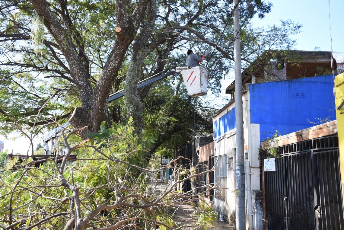 Los trabajos se extienden sobre las avenidas 3 de abril y Ferré y tienen como objetivo mejorar la iluminación y la seguridad de la zona. La próxima semana la poda llegará al barrio Cambá Cuá.