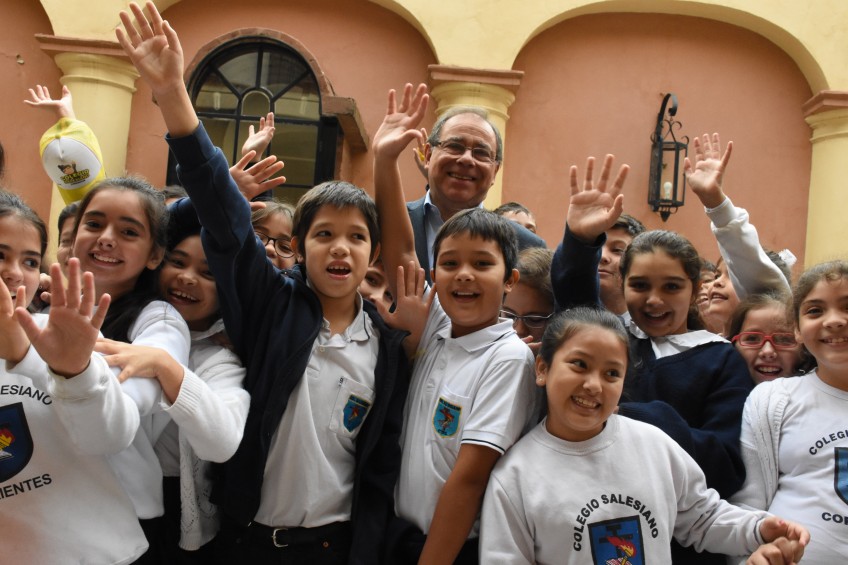 En diálogo con los niños, el jefe comunal les contó que él fue alumno hasta tercer grado de la primaria en el Salesiano: "Es por eso que es un colegio que está en mi corazón", resaltó, tras lo cual los niños le regalaron una medalla de María Auxiliadora.