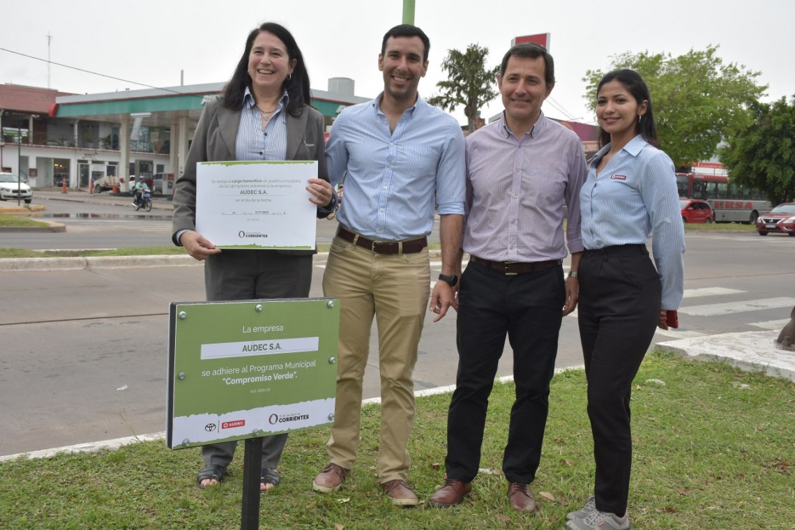 La Municipalidad de Corrientes sumó este martes a la concesionaria Audec al programa Compromiso Verde, para apadrinar árboles o espacios verdes de la ciudad, tomando el compromiso de cuidado, protección y desarrollo a través del riego, la fertilización y todo lo necesario para que los mismos puedan crecer vitales.