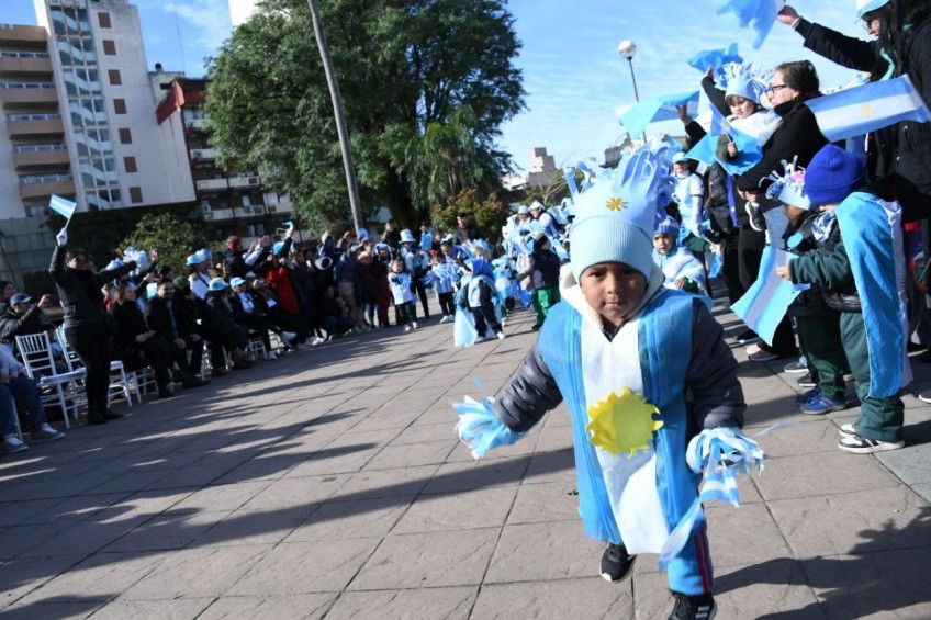 Con un desfile por la peatonal Junín, entre las plazas Vera y Cabral, niños integrantes de cuatro Centros de Desarrollo Infantil (CDI) municipales, rindieron homenaje este lunes por la mañana a la Bandera Argentina, y a su creador, Manuel Belgrano.