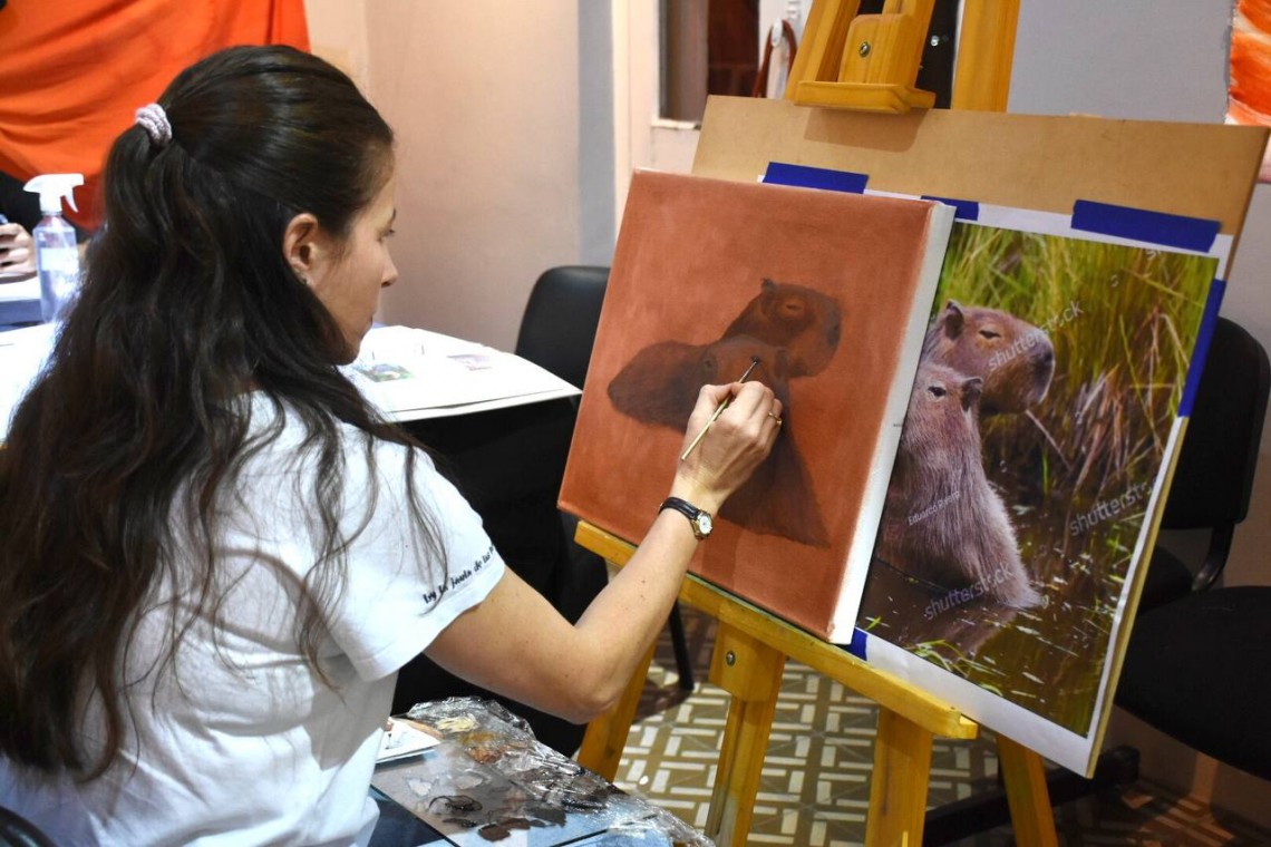 En el mismo horario, pero en el Centro Cultural Adolfo Mors, sito en Pellegrini 542, profesores y alumnos del Instituto Superior Josefina Contte trabajaron en vivo en diferentes obras de arte.