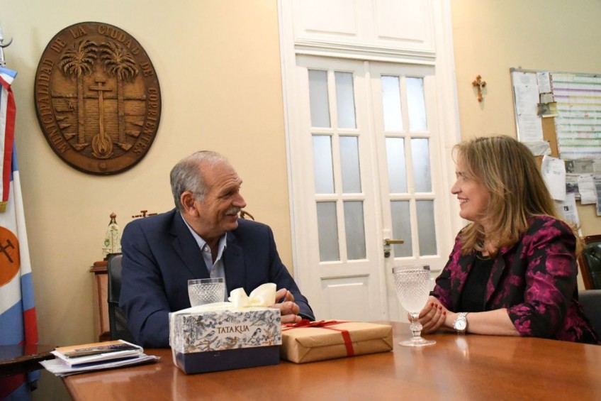 Al finalizar la reunión, la diplomática, que recientemente tomó posesión del cargo del consulado de la República del Paraguay en Corrientes, hizo entrega al vicejefe comunal de sendos presentes.