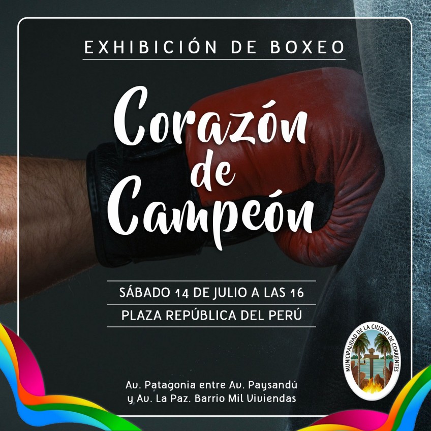 La Municipalidad de la Ciudad de Corrientes (MCC), a través de la Subsecretaría de Deportes, instalará un cuadrilátero en el cual se realizarán combates de exhibición, muestras de guanteo y prácticas físicas específicas de la disciplina, que cuenta con cada vez más adeptos en Corrientes.