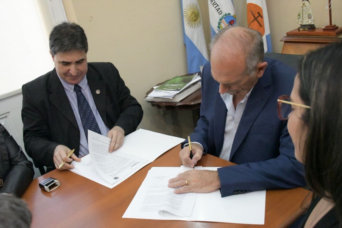 El viceintendente, Emilio Lanari, firmó el convenio con el presidente del organismo, Pedro Cotelo. El acuerdo permitirá que los vecinos que se acerquen a los operativos de la Muni en tu Barrio puedan realizar consultas de manera gratuita.