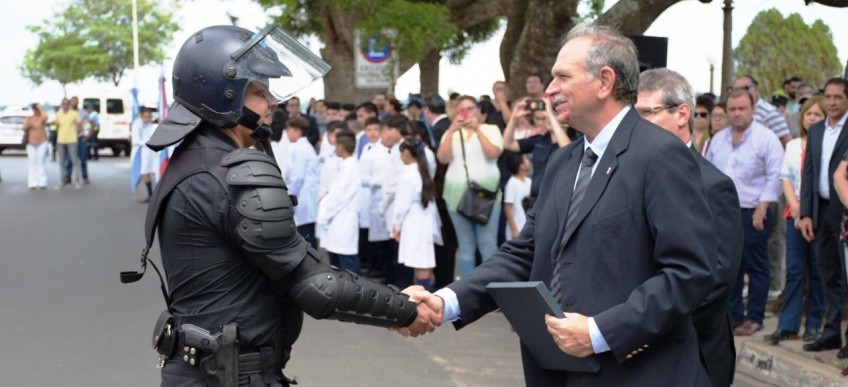 Se realizó este viernes, frente a la Delegación Corrientes, el acto organizado por la Policía Federal Argentina en la semana del 197º aniversario de la fuerza, al cual asistieron en representación de la Municipalidad de la Ciudad de Corrientes (MCC) el viceintendente Emilio Lanari y el subsecretario de Seguridad, Yamandú Barrios.