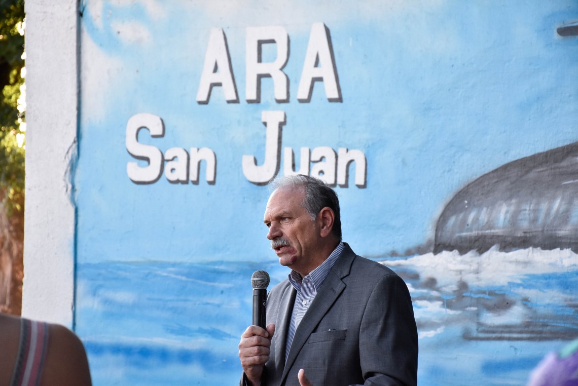 “Hoy estamos reunidos por esas personas que nos demuestran que siguen existiendo héroes todavía: estos 44 submarinistas que con una misión muy complicada, un mar terrible, dieron su vida en defensa de nuestra soberanía”, resaltó el viceintendente Emilio Lanari, al hacer uso de la palabra, en medio de mucha emoción entre los presentes.
