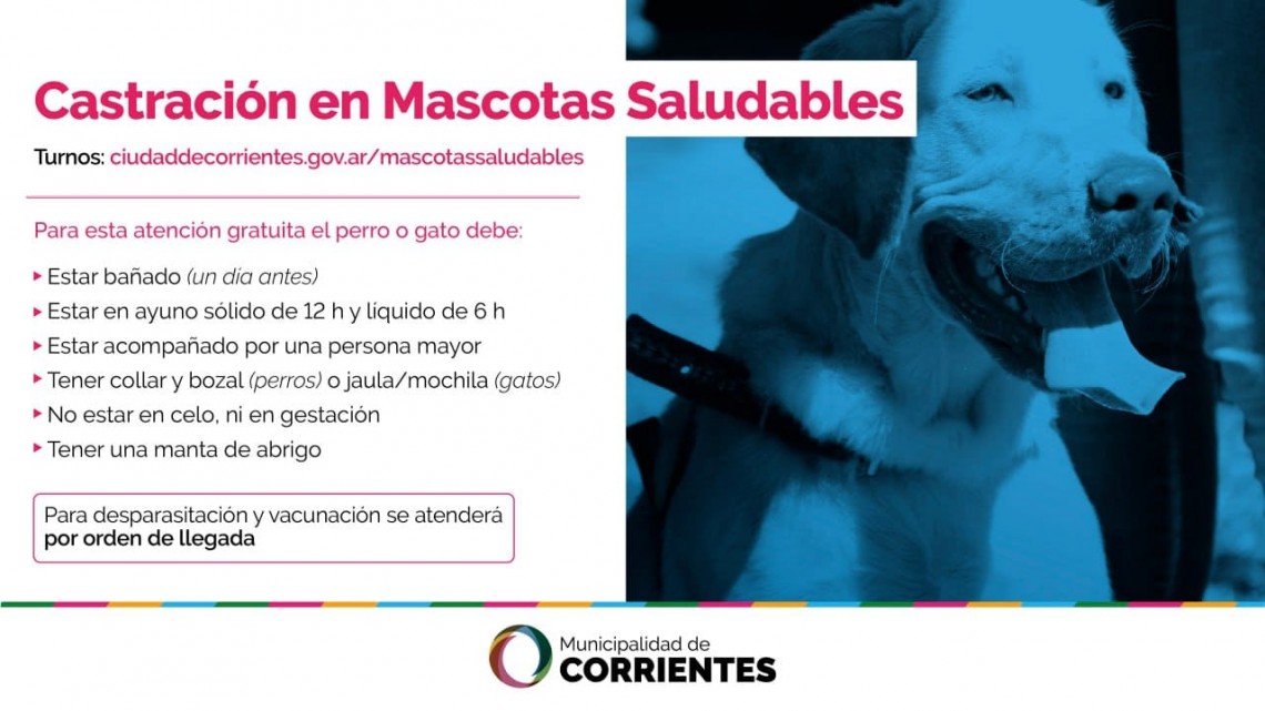 En lo que respecta a la castración, se debe solicitar turno previamente en la página web: ciudaddecorrientes.gov.ar/mascotassaludables y registrarse con sus datos personales y los de su mascota. “Allí también se explican los requisitos que deben cumplir para que se den las condiciones seguras para la intervención quirúrgica y luego tiene que seleccionar la opción para acceder al turno”, explicó Vanasco.