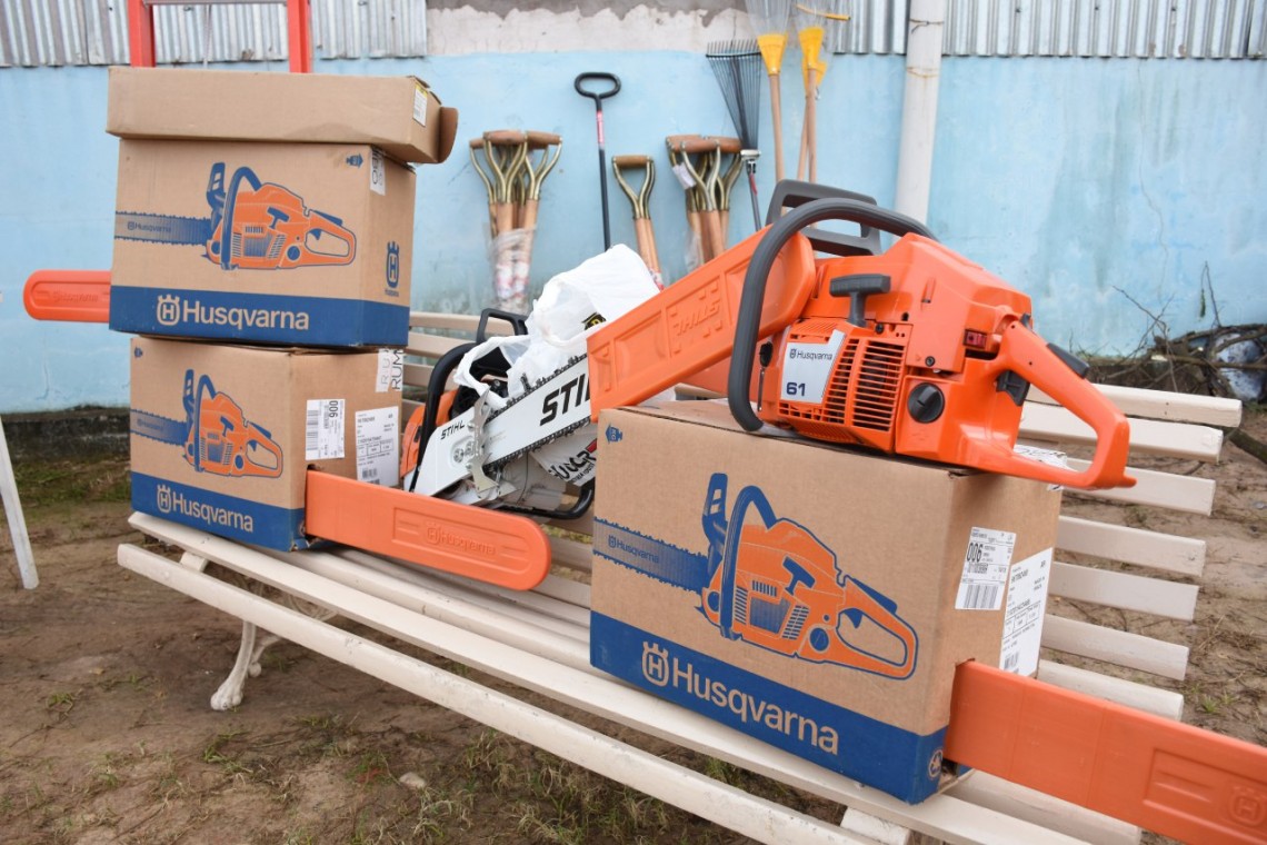 Mediante un acto desarrollado este jueves en el obrador municipal, se adjudicaron motosierras con extensibles, motoguadañas, escaleras, cascos y guantes, entre otros elementos destinados a las direcciones de Arbolado Urbano y Espacios Verdes. Se trata de una acción que optimizará las condiciones laborales del personal.
