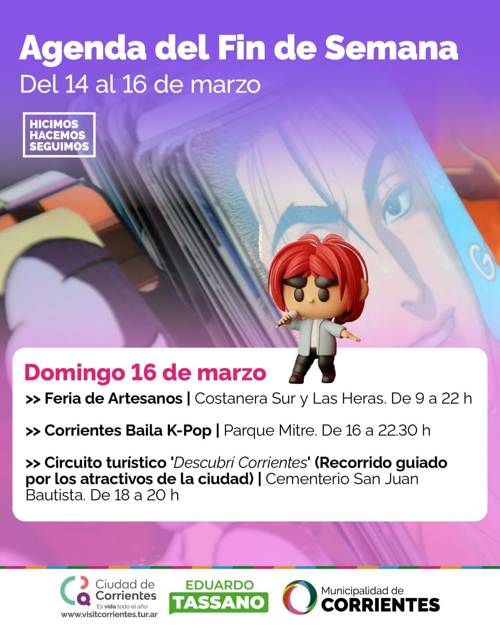 Como cada fin de semana, la Municipalidad de la ciudad de Corrientes propone una gran variedad de actividades gratuitas para que vecinos y visitantes disfruten de la ciudad a pleno.