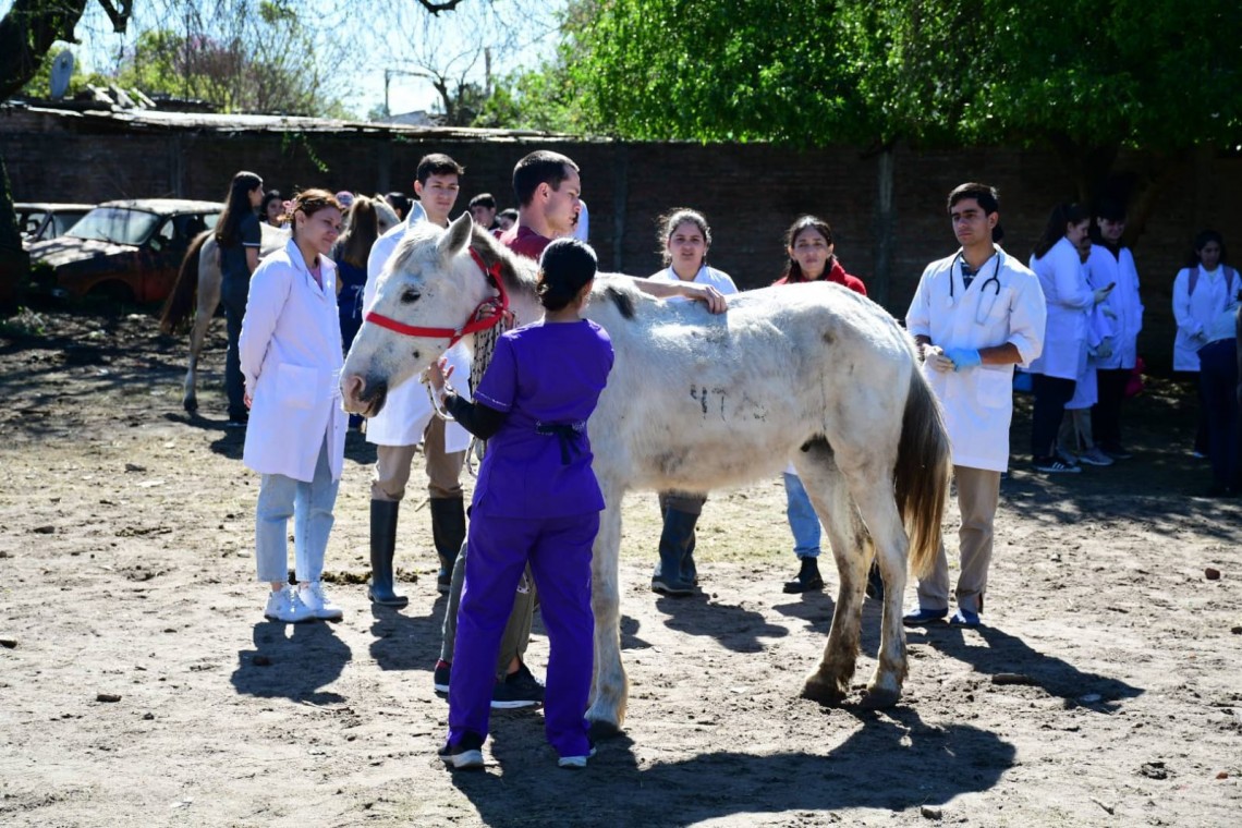 En el marco de un programa de extensión firmado entre la Municipalidad de Corrientes y la Universidad Nacional del Nordeste (UNNE), estudiantes de la Facultad de Ciencias Veterinarias realizan prácticas y colaboran en la atención sanitaria de caballos que fueron maltratados o secuestrados en la vía pública, así como aquellos que se entregaron voluntariamente en el marco del plan de reconversión productiva de los carreros.