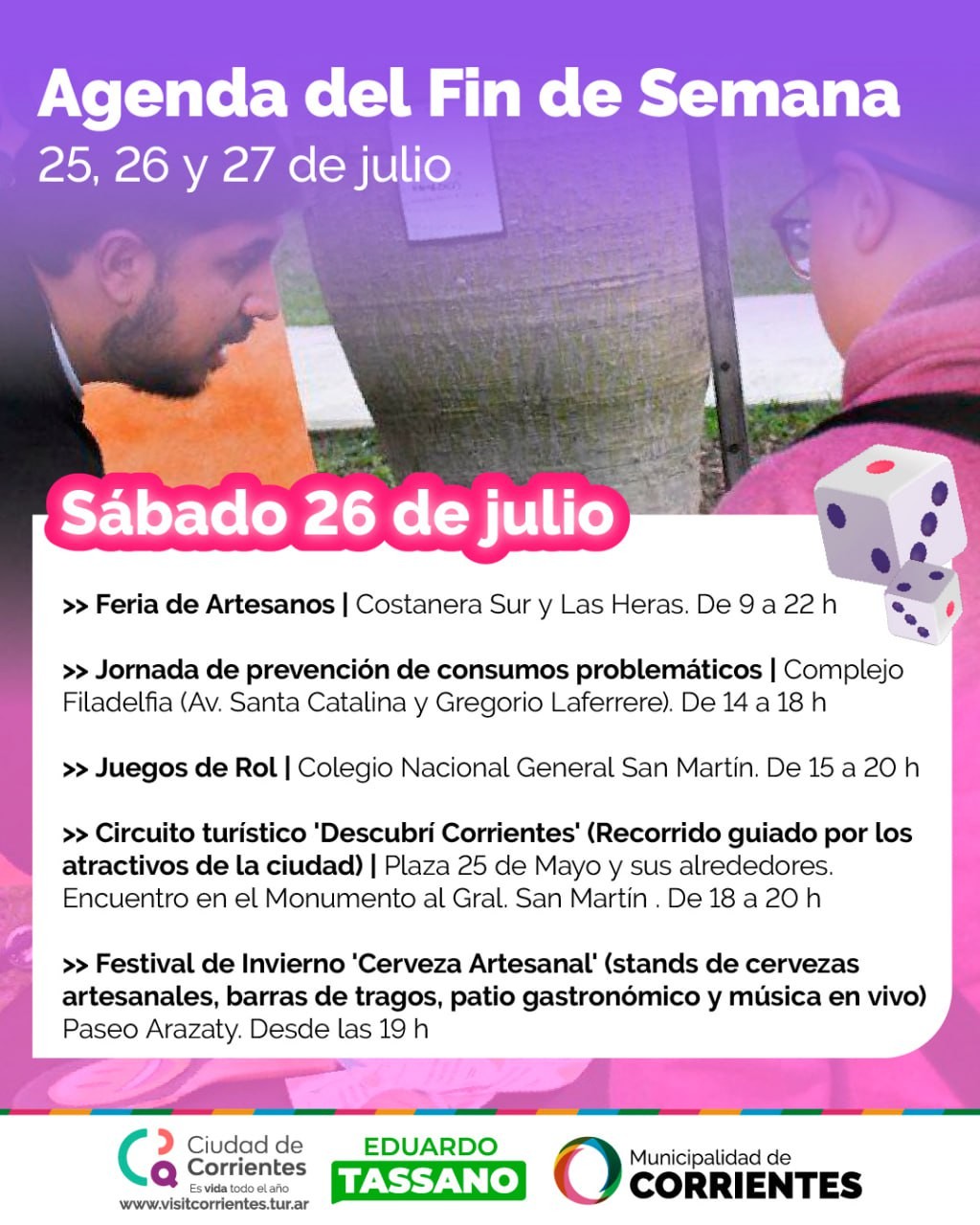 Desde el viernes y hasta el domingo, la Municipalidad de Corrientes ofrecerá un abanico de propuestas para grandes y chicos. El festival de invierno de cerveza artesanal en Paseo Arazaty será una de las actividades de mayor magnitud. Tendrá lugar también los habituales recorridos guiados, la Feria de Artesanos y la Peña de la Ciudad, al igual que una exhibición de artes marciales.