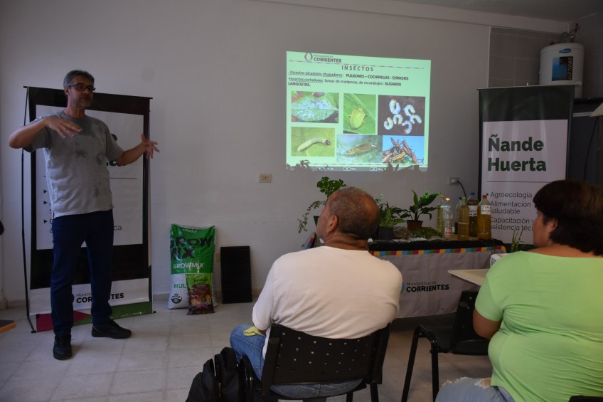 En la oportunidad, profesionales del área instruyeron a los asistentes al primer taller, que se llevó adelante en uno de los salones ubicado por Pasaje Villanueva 1460, y que se denominó “Identificación y control de plagas y enfermedades en la huerta agroecológica”.