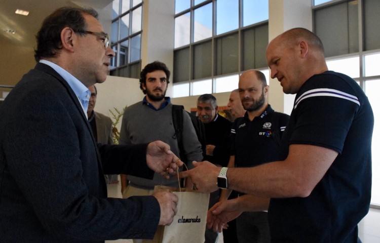 El intendente recibió en el aeropuerto Piragine Niveyro al selectivo que el sábado jugará un amistoso en Resistencia.