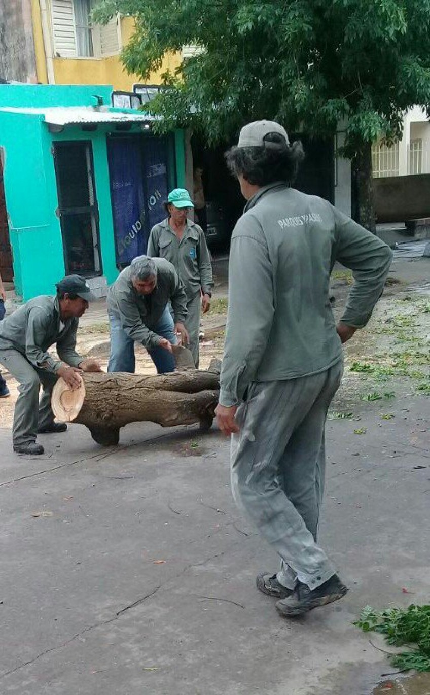 Dado los fuertes vientos que provocaron la caída de un árbol de gran porte en el barrio 9 de Julio, sobre la calle Resoagli al 2.400, se realizó la primera intervención el domingo por la mañana.