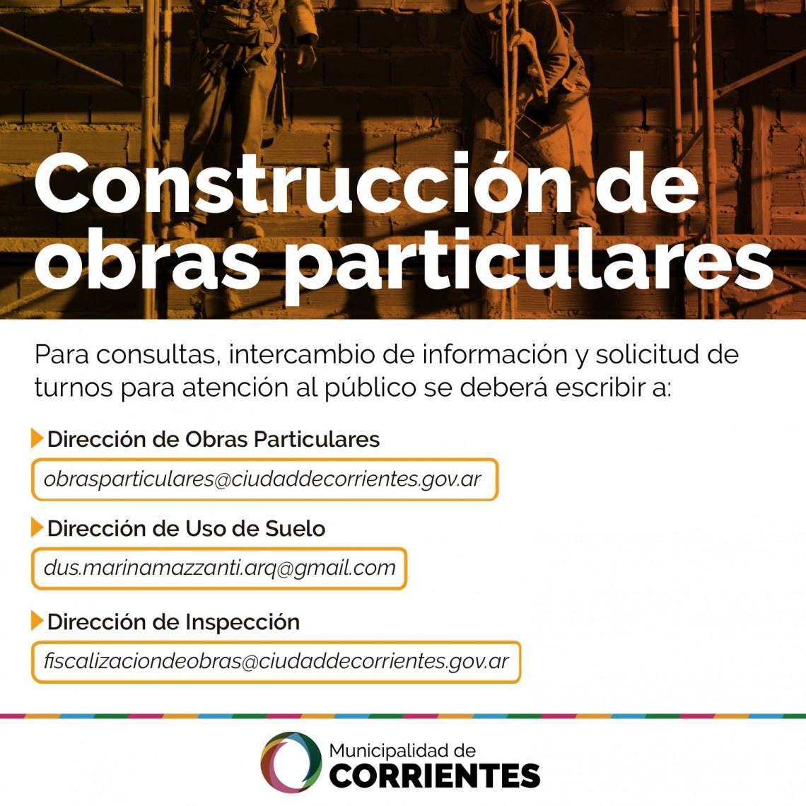 Dirección de Obras Particulares (obrasparticulares@ciudaddecorrientes.gov.ar),