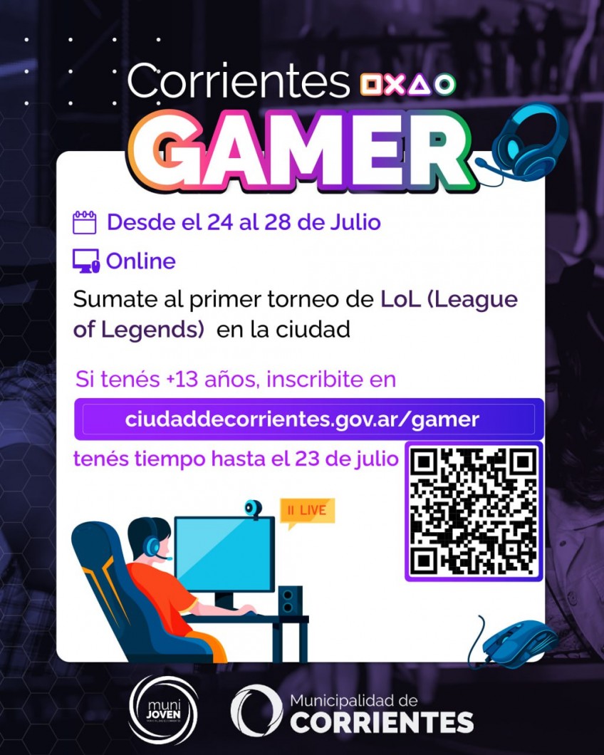 Organizado por la Municipalidad de Corrientes, comenzó la inscripción para el torneo impulsado por “Corrientes Gamer” en el que aficionados del videojuego de PC conocido como League of Legends (LoL) podrán sumarse y competir por importantes premios. Los interesados en sumarse tienen tiempo hasta el 22 de julio y podrán anotarse a través del siguiente link: ciudaddecorrientes.gov.ar/gamer