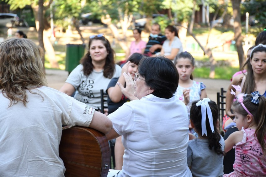 La narradora correntina dijo “lo que queremos transmitir es que los niños, y también los grandes, aprendan a leer, saber que el libro es necesario. Sabemos que competimos con otros medios, como radio, televisión, teléfonos celulares, pero un libro nos transporta a un mundo mágico y eso es lo que queremos que tengan los niños de hoy, y para que sea igualitario, elegimos que las narraciones se hagan en estos espacios públicos, como son el parque Cambá Cuá y la plaza de la Tradición”.
