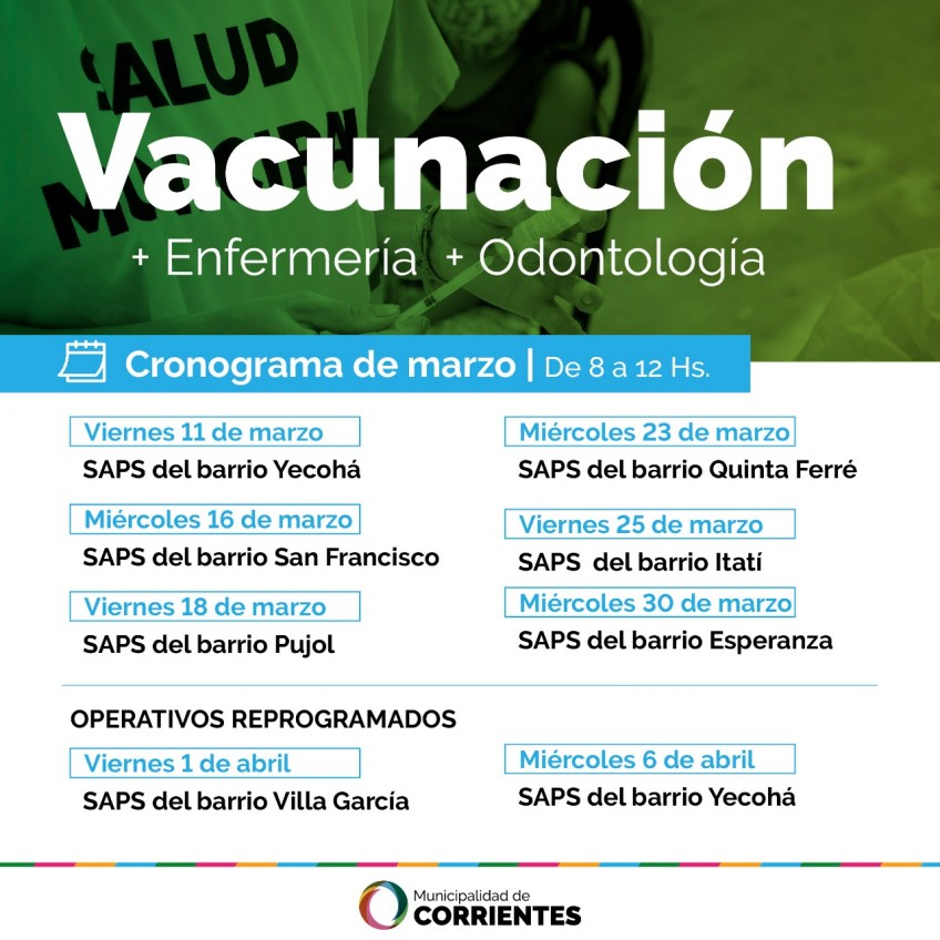 En el marco del inicio del ciclo lectivo, la Municipalidad de Corrientes a través de la Secretaría de Salud, refuerza los controles de salud y el calendario de vacunación en escolares de diferentes edades. Si bien estas acciones se desarrollan durante todo el año, durante marzo se intensifican con el objetivo de completar las vacunas de los niños y niñas que lo requieren para así cumplir las fichas de inscripción solicitadas en las diferentes instituciones educativas.