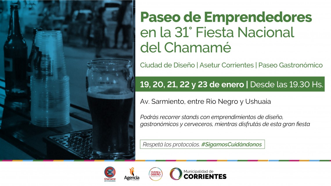 En el marco de la Fiesta Nacional del Chamamé, la Municipalidad continúa acercando diversas propuestas para los vecinos y turistas. Desde este miércoles y hasta el domingo 23, de 19:30 a 2, los stands de Ciudad de Diseño, Patio Gastronómico y cervecería artesanal están en el espacio ubicado por Sarmiento, entre Ushuaia y Río Negro.