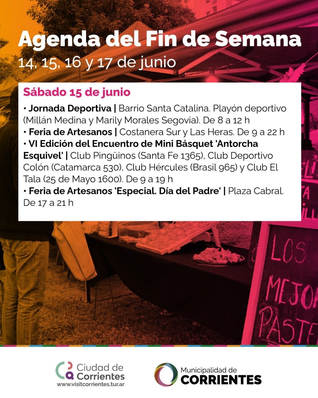 Como parte de las actividades que cada fin de semana la Municipalidad de Corrientes pone a disposición de los vecinos y visitantes, desde el viernes y hasta el lunes se desarrollarán propuestas culturales y deportivas en diferentes puntos de la ciudad con acceso totalmente libre y gratuito.