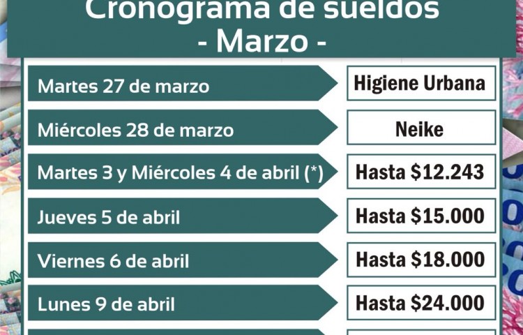 Mañana se inicia el cronograma de sueldos del mes de marzo