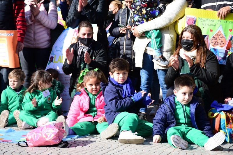 Más de 70 jardineritos de tres Centros de Desarrollo Infantil (CDI) de la Capital, junto a sus familias, realizaron una caminata hoy por peatonal Junín, en el marco del cierre de actividades por la Semana Mundial de la Lactancia Materna. Entregaron souvenirs y tarjetitas con la intención de concientizar sobre su importancia.