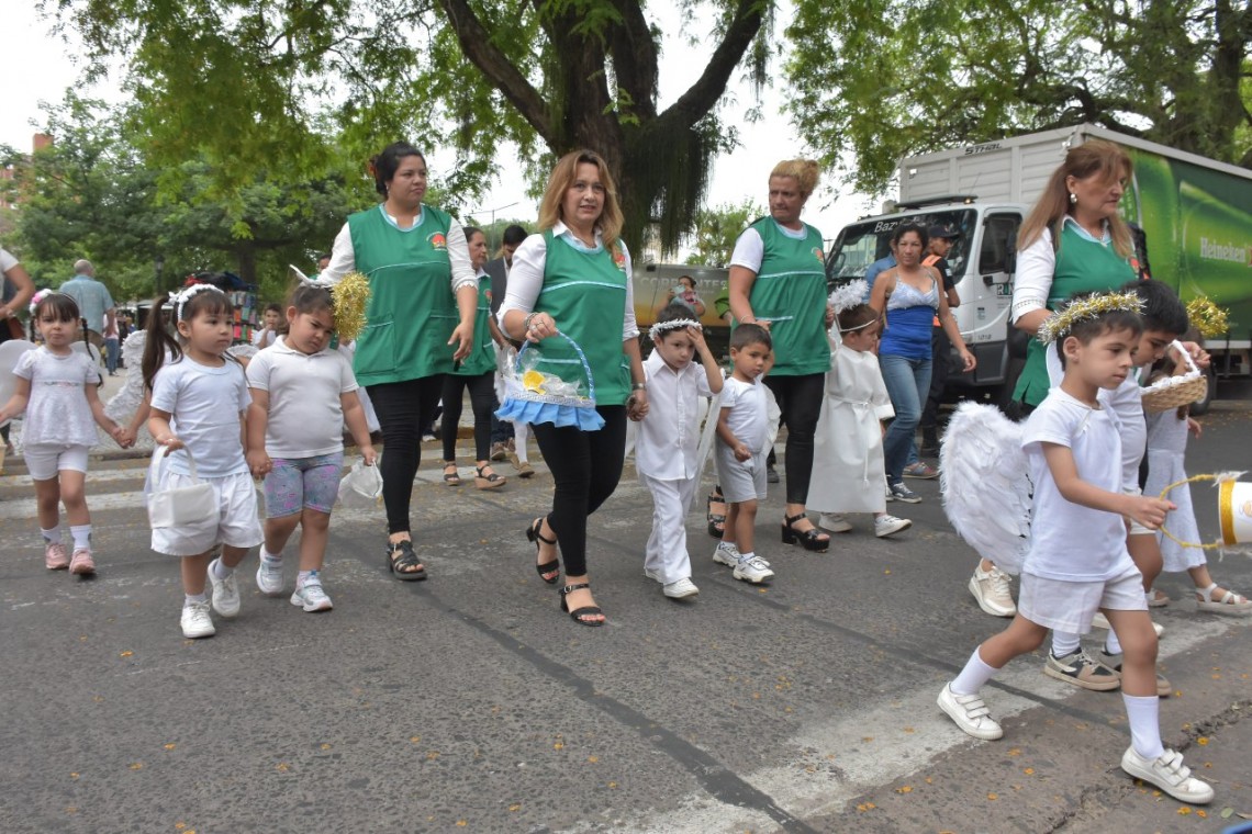En una actividad organizada por la Municipalidad de Corrientes, la antigua tradición cultural de Ángeles Somos fue recreada este viernes en la peatonal Junín por un grupo de niños de las salas de 3 y 4 años de los Centros de Desarrollo Infantil (CDI) municipales I y XII de los barrios Popular y Virgen de Guadalupe.