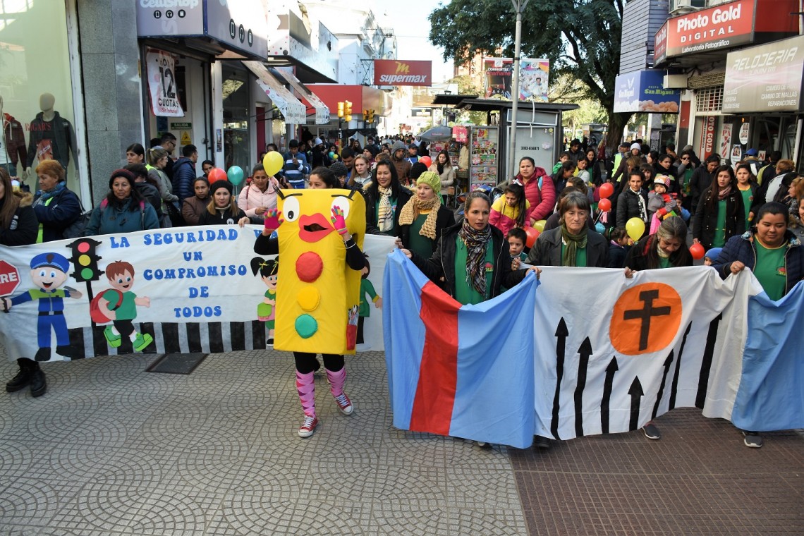 Acompañados de docentes y tutores, los chicos recorrieron toda la peatonal Junín con mensajes de concientización y entregaron folletos con mensajes sobre la importancia de respetar las normas de tránsito.