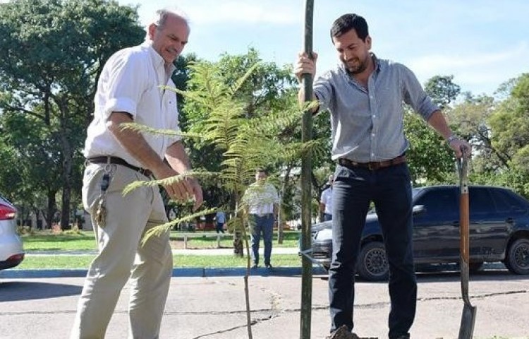 La Municipalidad plantó nuevos árboles en la plaza La Cruz