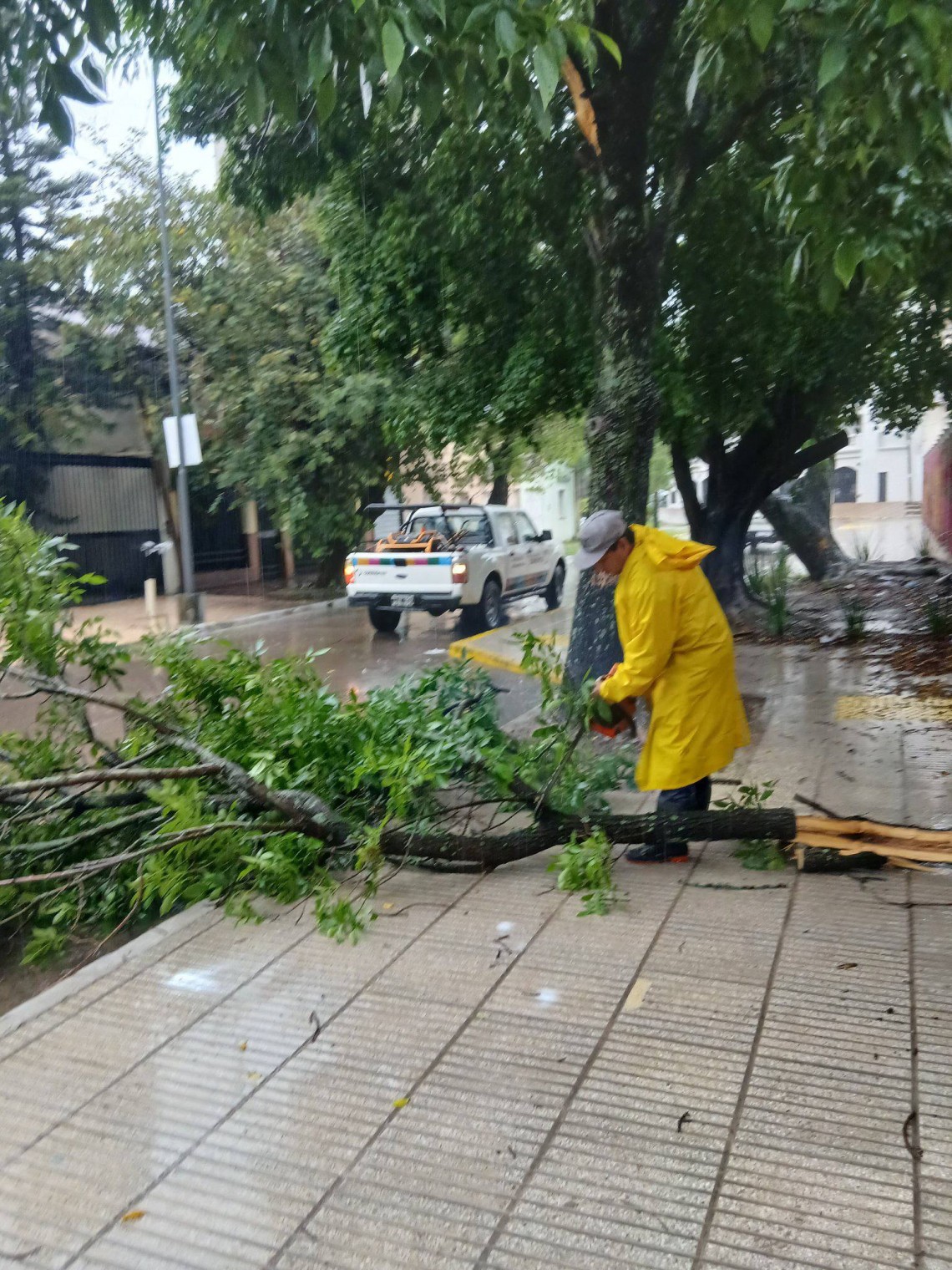 Un intenso temporal afectó a la ciudad durante la madrugada del sábado, dejando cerca de 100 milímetros de lluvia acumulada y la caída de varios árboles, aunque sin daños de gravedad. Cuadrillas municipales trabajan desde temprano en la limpieza de desagües y sumideros.