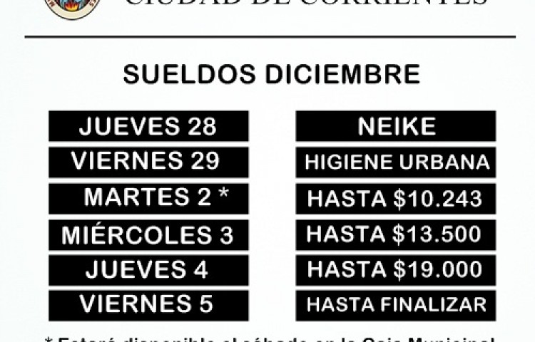 La Municipalidad de Corrientes iniciará este jueves el pago de sueldos a su personal