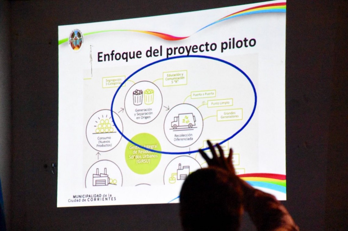 La presentación tuvo lugar en el colegio Presidente Arturo Frondizi, marco en el cual se destacó que la prueba piloto se desarrollará en dos barrios: Los Profesionales del Molina Punta y Juan XXIII. "Esta iniciativa cuenta de cuatro etapas: la primera fue de diagnóstico, en la que identificamos la cantidad de residuos que se recolectan en la ciudad, unos 350 mil kilos diarios aproximadamente; además de la cantidad de basurales que existen", detalló el funcionario.