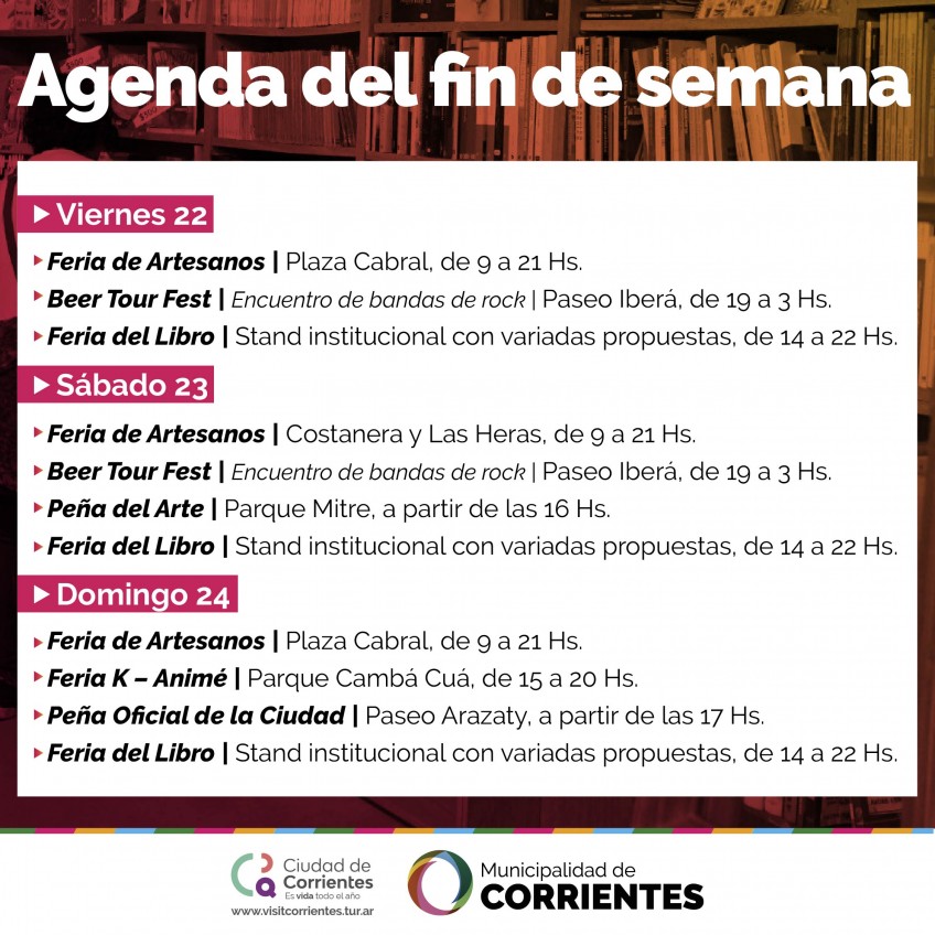 En el marco del receso invernal, la Municipalidad de Corrientes continúa ofreciendo diferentes propuestas culturales y recreativas para disfrutar en la ciudad. Este fin de semana habrá patio gastronómico, actuación de bandas en vivo, festival de animé, entre otras opciones para vivir a pleno las vacaciones, con acceso libre y gratuito.