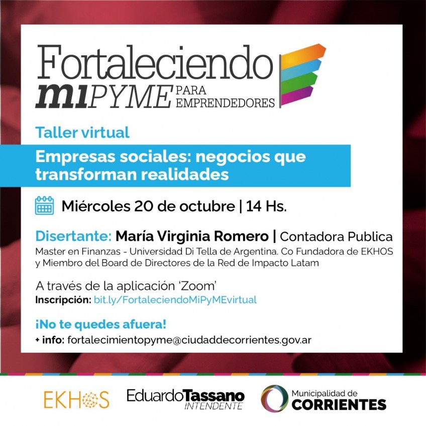 En el marco del programa Fortaleciendo MiPyME que lleva adelante la Municipalidad de Corrientes este miércoles 20 de octubre se llevará adelante un nuevo taller de capacitación gratuita para emprendedores.