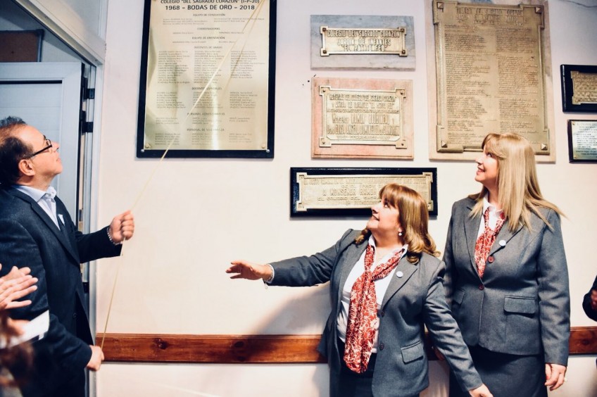 El intendente estuvo presente en el acto desarrollado en el Colegio del Sagrado Corazón, donde se realizó la ceremonia de descubrimiento y bendición de la placa recordatoria y presentación de la Canción Augural por los 50 años de la institución. El jefe comunal resaltó "el enorme aporte social, cultural e histórico del Colegio" e instó a la comunidad escolar "a consolidar los vínculos de interacción social".
