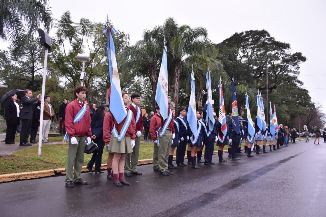 Tassano encabezó las actividades protocolares junto al vicegobernador Pedro Braillard Poccard. La agenda comenzó con el izamiento en el mástil de la ciudad, frente al Regimiento 9, y luego la ofrenda floral en la plazoleta Manuel Belgrano, en Avenida 3 de Abril y Pago Largo.