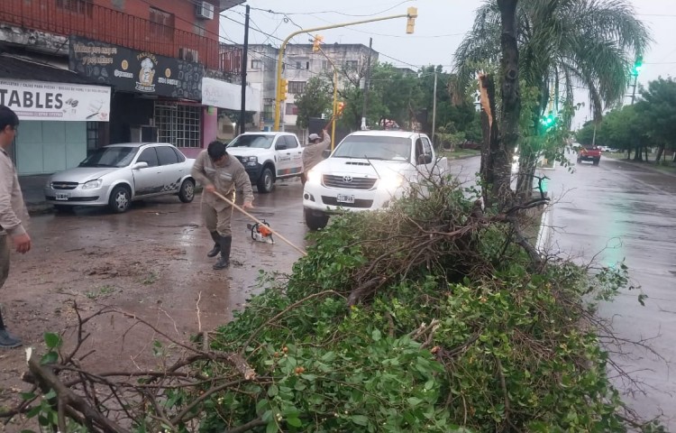 La tormenta con lluvia afectó más a la zona Sur de la ciudad, donde por la acción del viento, cayó un árbol y dos postes de servicios.