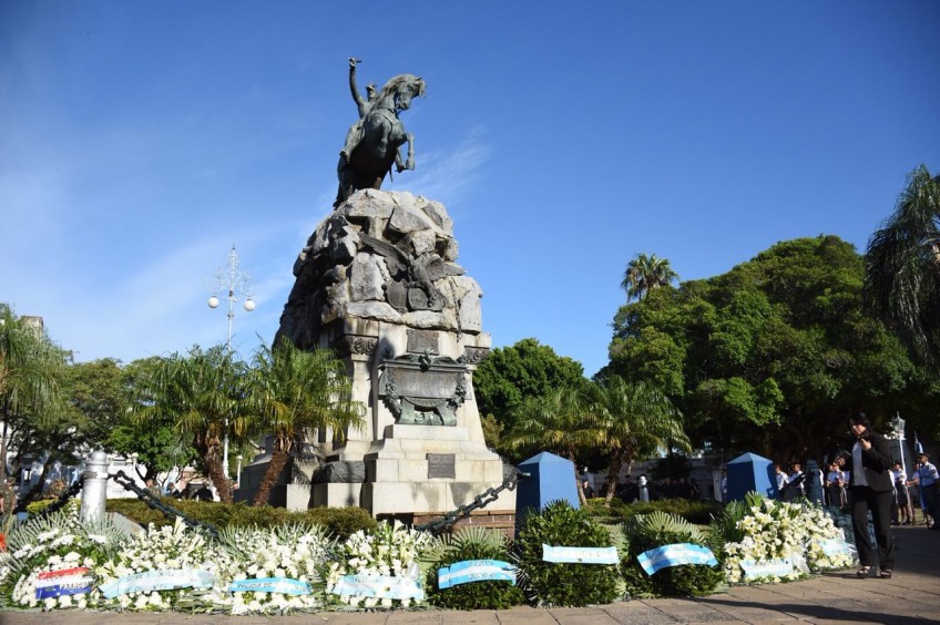 En la oportunidad, y tras el saludo protocolar de las formaciones militares presentes, se depositaron ofrendas florales al pie del Monumento al Libertador de América.