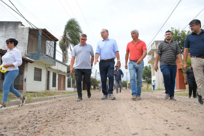 “Estamos siguiendo las obras viales para garantizar que todo el barrio San Gerónimo y todos los vecinos tengan infraestructura vial y cloaca”, indicó el intendente al supervisar las obras que se ejecutan en la zona.
