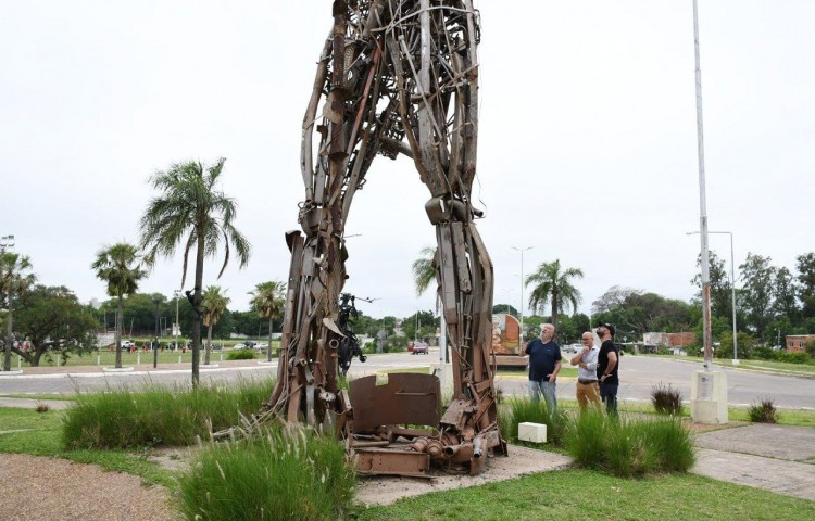 Se trata de una obra ubicada en la intersección de las avenidas Costanera Sur Juan Pablo II y Jorge Romero, que tiene 17 metros de altura y fue realizada con más de 15 toneladas de hierro recic