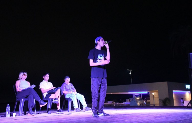 Artistas urbanos mostraron su talento en una jornada de Mic Libre en playa Arazaty