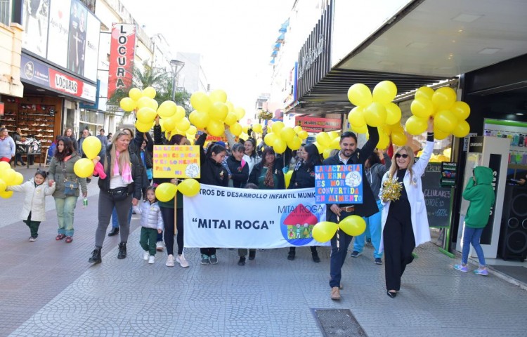 Directivos, madres, padres y niños de los Centros de Desarrollo Infantil de los barrios Quilmes y Popular recorrieron la peatonal con pancartas y globos recordando a los transeúntes la importan