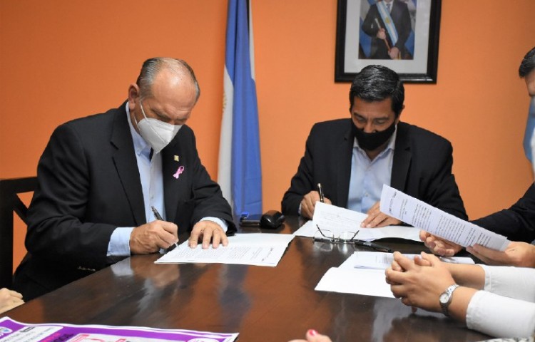 El viceintendente, Emilio Lanari, y el ministro de Justicia y Derechos Humanos de la Provincia, Buenaventura Duarte, firmaron un convenio de cooperación para avanzar en los trabajos de prevenci