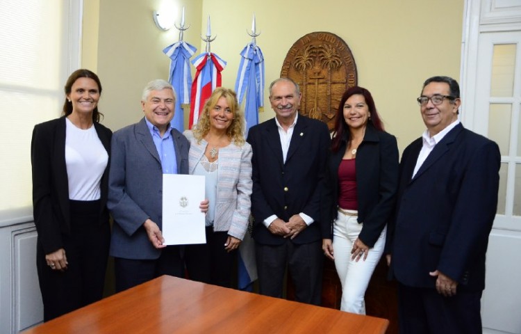 El catedrático barcelonés Rafael Bisquerra fue recibido por el Viceintendente Emilio Lanari quien entregó en sus manos, la Declaración de Interés Municipal de la Jornada de perfeccionamiento e