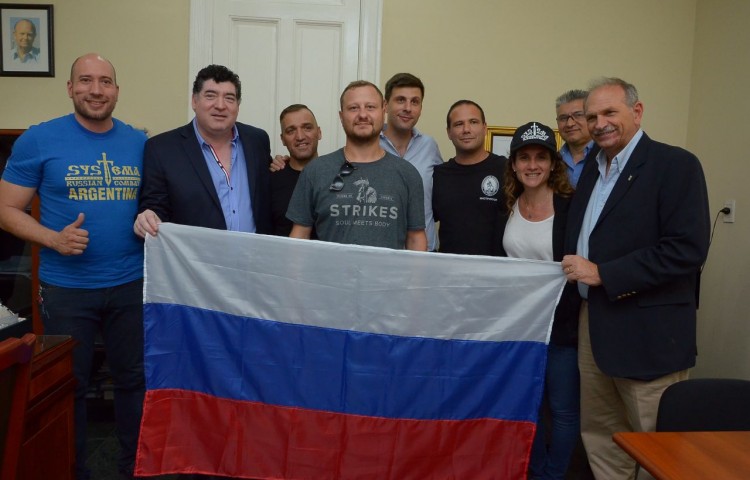 Emilio Lanari recibió este viernes a Daniil Ryabko, quien dictará este sábado y domingo un seminario de Systema Russian Combat en el club Sportivo.